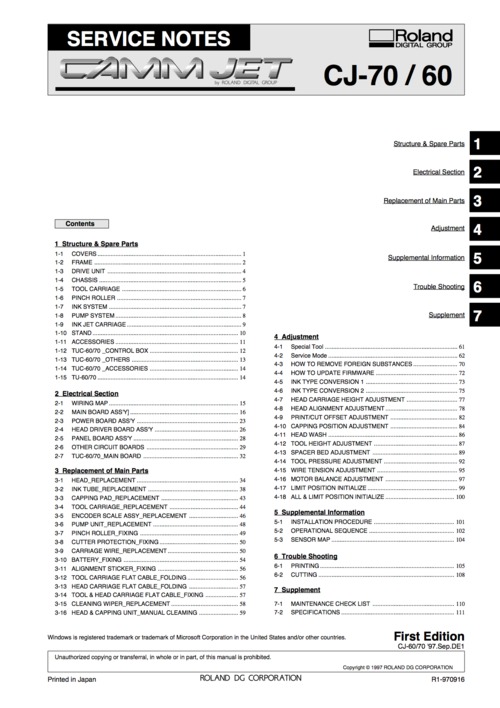 Roland cj70 cj-70 cj60 cj-60 cammjet service manual