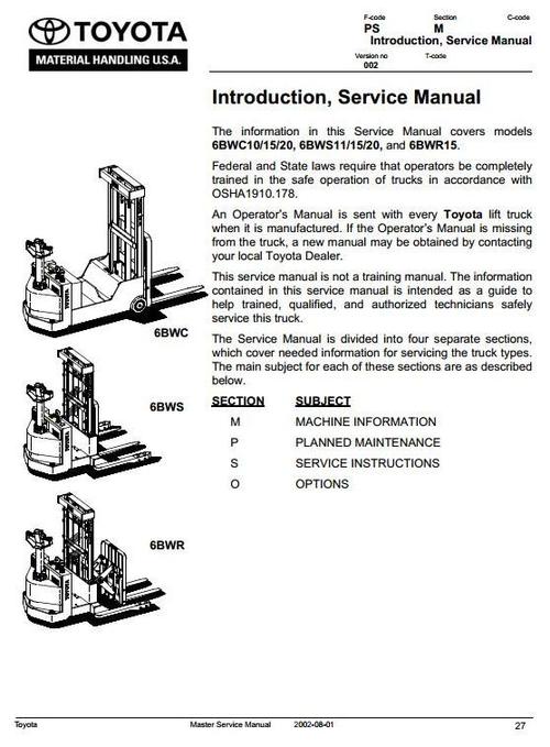Original factory manuals for Toyota (BT) Forclift Trucks, contains high quality images, circuit diagrams and instructions to help you to operate, maintenance and repair your truck. All Manuals Printable, contains Searchable Text and Navigation Bookmarks