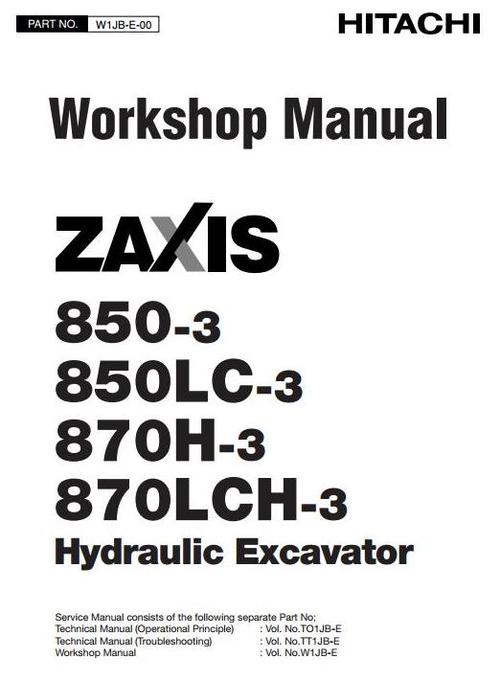 Hitachi Hydraulic Excavator Zaxis 850-3, 850LC-3, 870H-3, 870LCH-3 Workshop Service Manual