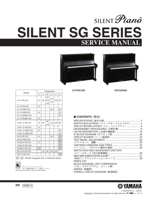 Yamaha sg series silent piano service manual upright