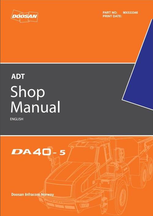 Original factory manuals for Doosan Articulated Dump Trucks, contains high quality images, circuit diagrams and instructions to help you to operate, maintenance and repair your truck. All Manuals Printable, contains Searchable Text and Navigation Bookmarks