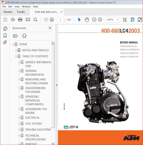 KTM 400LC4 and 660LC4 engine repair manual. Model 2003