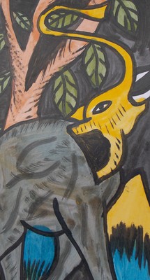 This wild animal elephant in the bush is displaying with its trunk in the bush, it is made with oil painting and used for interior decoration for home and office decoration.