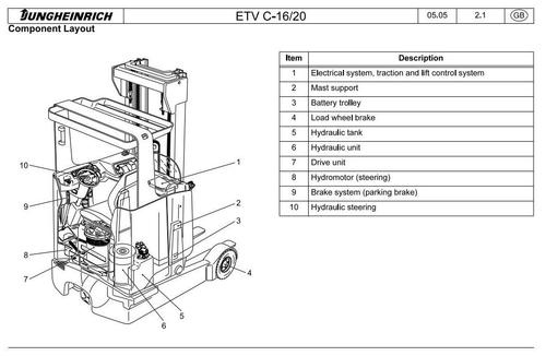 Original factory manuals for Jungheinrich Forklift Trucks, contains high quality images, circuit diagrams and instructions to help you to operate and repair your truck. All Manuals Printable and contains Searchable Text
