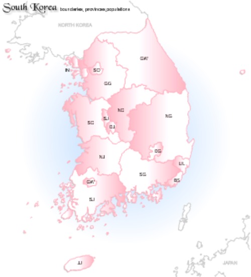 1 fla 6 swf South Korea provinces Populations Linear Gradient (6 Color)