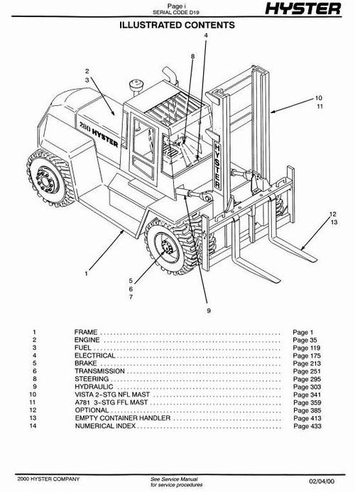 Original factory manuals for Hyster Forklift Trucks, contains high quality images, circuit diagrams and instructions to help you to operate, maintenance and repair your truck. All Manuals Printable, contains Searchable Text