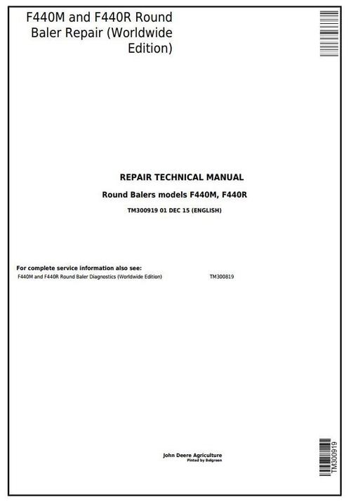 Illustrated Factory Service Repair Technical Manual for John Deere Hay and Forage Round Balers Models F440M and F440R (Worldwide Edition)