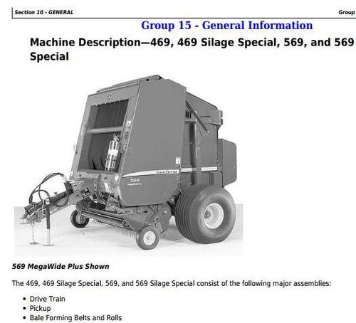 John Deere 469s, 569s Silage Special; 469, 569 Round Balers All Inclusive Technical Manual (TM121219)