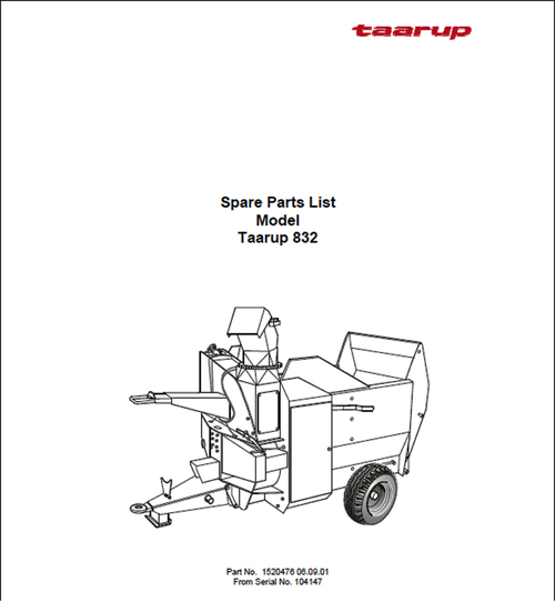 Taarup KD832 parts catalog is very detailed and contains quality information about repair, maintain, rebuild, refurbish or restore. Most of the detailed pictures is given for do it your self mechanics and those performing repairs and maintenance procedures.