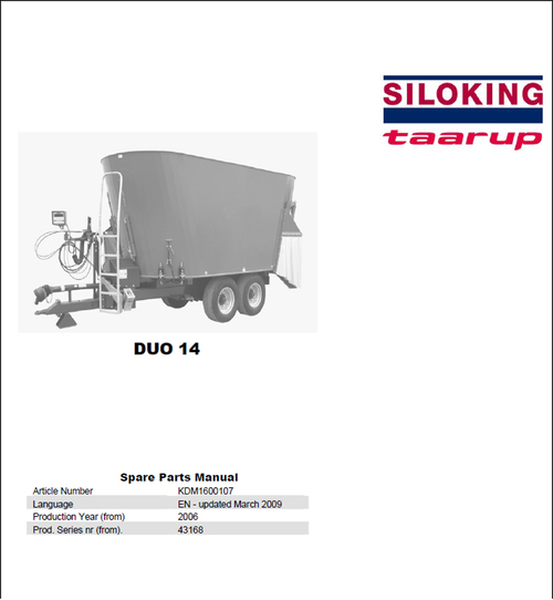 Taarup Duo 14 parts catalog is very detailed and contains quality information about repair, maintain, rebuild, refurbish or restore. Most of the detailed pictures is given for do it your self mechanics and those performing repairs and maintenance procedures.