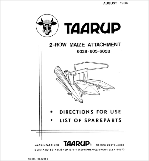 Taarup 602B 605 605B Spare Parts Manual for Forage harvester