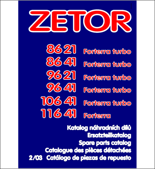Zetor Forterra 86-21 86-41 96-21 parts catalog is very detailed and contains quality information about repair, maintain, rebuild, refurbish or restore. Most of the detailed pictures is given for do it your self mechanics and those performing repairs and maintenance procedures.