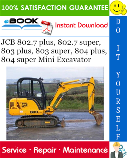 This is the COMPLETE Service Repair Manual for the JCB 802.7 plus, 802.7 super, 803 plus, 803 super, 804 plus, 804 super Mini Excavator. It contains deep information about maintaining, assembly, disassembly and servicing your JCB 802.7 plus, 802.7 super, 803 plus, 803 super, 804 plus, 804 super Mini Excavator.