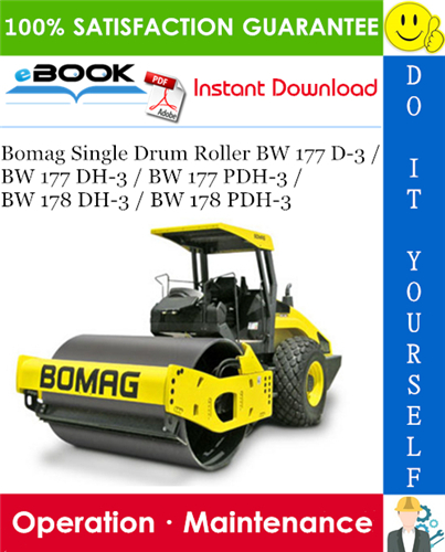 This is the COMPLETE Operation & Maintenance Manual for the Bomag Single Drum Roller BW 177 D-3 / BW 177 DH-3 / BW 177 PDH-3 / BW 178 DH-3 / BW 178 PDH-3.