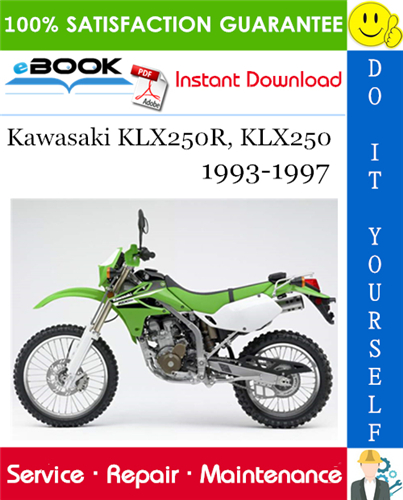 This is the COMPLETE Service Repair Manual for the Kawasaki KLX250R, KLX250 Motorcycle. Production model years 1993 1994 1995 1996 1997. It Covers complete tear down and rebuild, pictures and part diagrams, torque specs, maintenance, troubleshooting, etc. You name it and its in here.