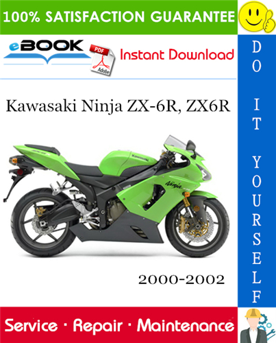 This is the COMPLETE Service Repair Manual for the Kawasaki Ninja ZX-6R, ZX6R Motorcycle. Production model years 2000 2001 2002. It Covers complete tear down and rebuild, pictures and part diagrams, torque specs, maintenance, troubleshooting, etc. You name it and its in here.