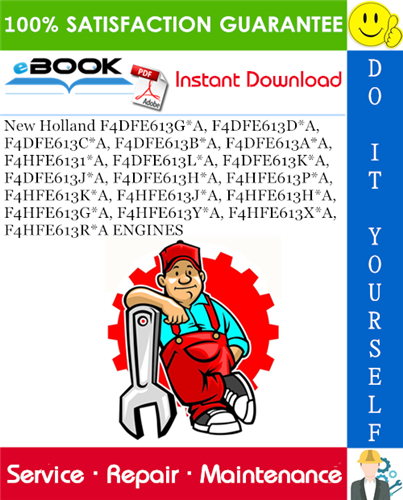 This is the COMPLETE Service Repair Manual for the New Holland F4DFE613G*A, F4DFE613D*A, F4DFE613C*A, F4DFE613B*A, F4DFE613A*A, F4HFE6131*A, F4DFE613L*A, F4DFE613K*A, F4DFE613J*A, F4DFE613H*A, F4HFE613P*A, F4HFE613K*A, F4HFE613J*A, F4HFE613H*A, F4HFE613G*A, F4HFE613Y*A, F4HFE613X*A, F4HFE613R*A ENGINES. It contains service, repair procedures, assembling, disassembling, wiring diagrams and everything you need to know.