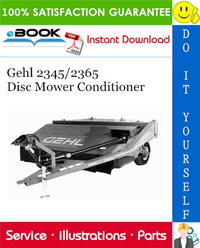This is the COMPLETE Parts Manual for the Gehl 2345/2365 Disc Mower Conditioner. Designed for the repair shops and individuals when ordering parts for their Gehl 2345/2365 Disc Mower Conditioner. This Manual describes and illustrates assemblies, subassemblies, and detail parts needed for service replacement. it Covers every part of your Gehl 2345/2365 Disc Mower Conditioner inside and out. Tons of pictures and diagrams at your fingertips!