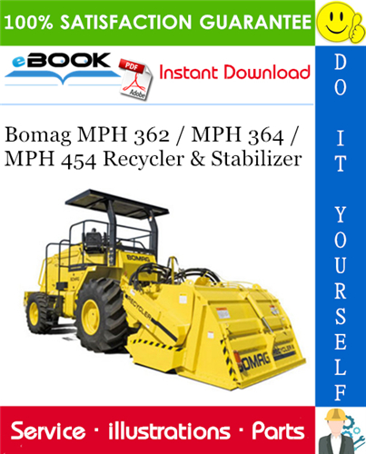 This is the COMPLETE Parts Manual for the Bomag MPH 362 / MPH 364 / MPH 454 Recycler & Stabilizer. Designed for the repair shops and individuals when ordering parts for their Bomag MPH 362 / MPH 364 / MPH 454 Recycler & Stabilizer. This Manual describes and illustrates assemblies, subassemblies, and detail parts needed for service replacement. it Covers every part of your Bomag MPH 362 / MPH 364 / MPH 454 Recycler & Stabilizer inside and out. Tons of pictures and diagrams at your fingertips!