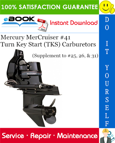 This is the COMPLETE Service Repair Manual for the Mercury MerCruiser #41 Turn Key Start (TKS) Carburetors (Supplement to #25, 26, & 31). It contains service, repair procedures, assembling, disassembling, wiring diagrams and everything you need to know.