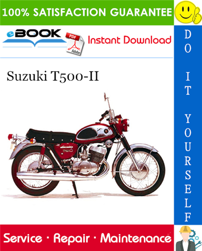 This is the COMPLETE Service Repair Manual for the Suzuki T500-II Motorcycle. It Covers complete tear down and rebuild, pictures and part diagrams, torque specs, maintenance, troubleshooting, etc.