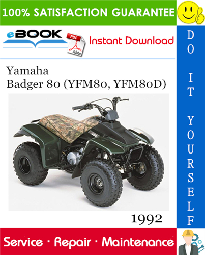 This is the COMPLETE Service Repair Manual for the Yamaha Badger 80 (YFM80, YFM80D) ATV. Production model years 1992. It Covers complete tear down and rebuild, pictures and part diagrams, torque specs, maintenance, troubleshooting, etc. You name it and its in here.