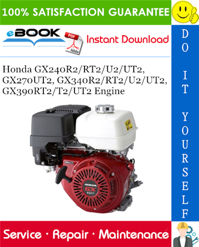 This is the COMPLETE Service Repair Manual for the Honda GX240R2/RT2/U2/UT2, GX270UT2, GX340R2/RT2/U2/UT2, GX390RT2/T2/UT2 Engine. It contains service, repair procedures, assembling, disassembling, wiring diagrams and everything you need to know.