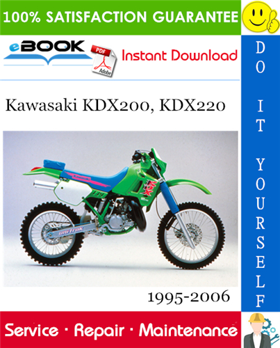 This is the COMPLETE Service Repair Manual for the Kawasaki KDX200, KDX220 Motorcycle. Production model years 1995 1996 1997 1998 1999 2000 2001 2002 2003 2004 2005 2006. It Covers complete tear down and rebuild, pictures and part diagrams, torque specs, maintenance, troubleshooting, etc.