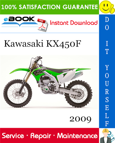 This is the COMPLETE Service Repair Manual for the Kawasaki KX450F Motorcycle. Production model years 2009. It Covers complete tear down and rebuild, pictures and part diagrams, torque specs, maintenance, troubleshooting, etc.