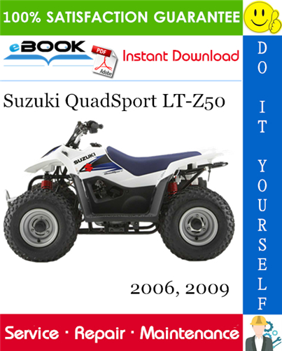 This is the COMPLETE Service Repair Manual for the Suzuki QuadSport LT-Z50 ATV. Production model years 2006 2009. It Covers complete tear down and rebuild, pictures and part diagrams, torque specs, maintenance, troubleshooting, etc.