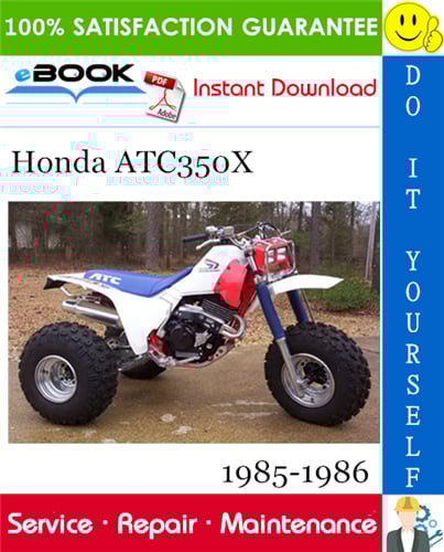 This is the COMPLETE Service Repair Manual for the Honda ATC350X models ATV. Production model years 1985 1986. It Covers complete tear down and rebuild, pictures and part diagrams, torque specs, maintenance, troubleshooting, etc.