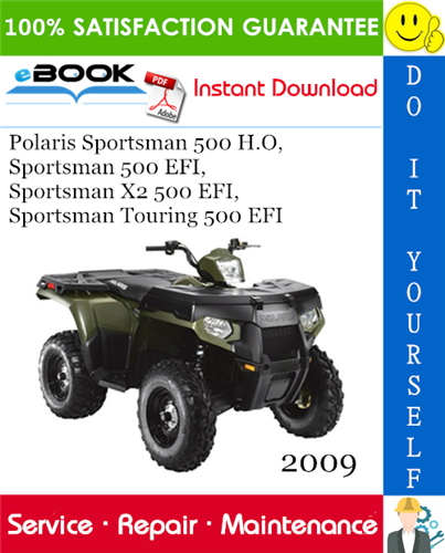 This is the COMPLETE Service Repair Manual for the Polaris Sportsman 500 H.O, Sportsman 500 EFI, Sportsman X2 500 EFI, Sportsman Touring 500 EFI ATV. Production model years 2009. It Covers complete tear down and rebuild, pictures and part diagrams, torque specs, maintenance, troubleshooting, etc.
