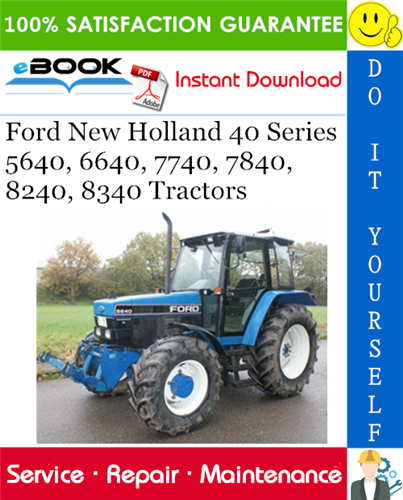This is the COMPLETE Service Repair Manual for the Ford New Holland 40 Series 5640, 6640, 7740, 7840, 8240, 8340 Tractors. This manual contains deep information about maintaining, assembly, disassembly and servicing your Ford New Holland Tractors.