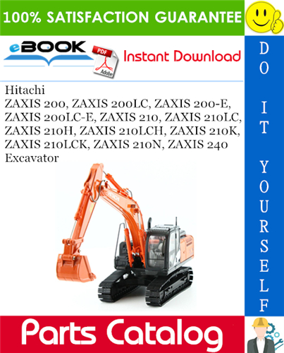 This is the COMPLETE Parts Catalog Manual for the Hitachi ZAXIS 200, ZAXIS 200LC, ZAXIS 200-E, ZAXIS 200LC-E, ZAXIS 210, ZAXIS 210LC, ZAXIS 210H, ZAXIS 210LCH, ZAXIS 210K, ZAXIS 210LCK, ZAXIS 210N, ZAXIS 240 Excavator. Designed for the repair shops and individuals when ordering parts for their Hitachi Excavator. This Manual describes and illustrates assemblies, subassemblies, and detail parts needed for service replacement. it Covers every part of your Hitachi ZAXIS 200, ZAXIS 200LC, ZAXIS 200-E, ZAXIS 200LC-E, ZAXIS 210, ZAXIS 210LC, ZAXIS 210H, ZAXIS 210LCH, ZAXIS 210K, ZAXIS 210LCK, ZAXIS 210N, ZAXIS 240 Excavator inside and out. Tons of pictures and diagrams at your fingertips!