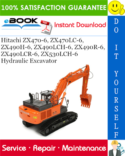 This is the COMPLETE Service Repair Manual for the Hitachi ZX470-6, ZX470LC-6, ZX490H-6, ZX490LCH-6, ZX490R-6, ZX490LCR-6, ZX530LCH-6 Hydraulic Excavator. It contains deep information about maintaining, assembly, disassembly and servicing your Hitachi ZX470-6, ZX470LC-6, ZX490H-6, ZX490LCH-6, ZX490R-6, ZX490LCR-6, ZX530LCH-6 Hydraulic Excavator.