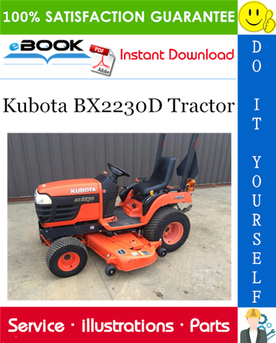 This is the COMPLETE Parts Manual for the Kubota BX2230D Tractor. Designed for the repair shops and individuals when ordering parts for their Kubota BX2230D Tractor. This Manual describes and illustrates assemblies, subassemblies, and detail parts needed for service replacement. it Covers every part of your Kubota BX2230D Tractor inside and out. Tons of pictures and diagrams at your fingertips!