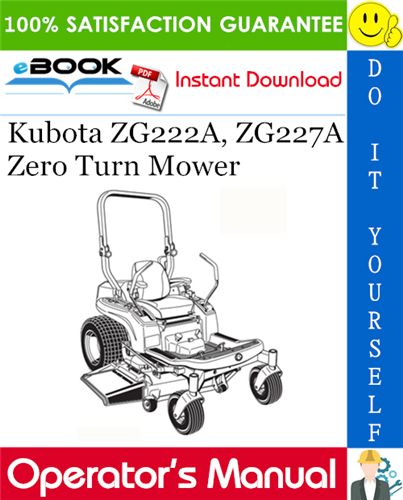 This is the COMPLETE Operators Manual for the Kubota ZG222A, ZG227A Zero Turn Mower.