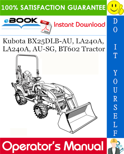 This is the COMPLETE Operators Manual for the Kubota BX25DLB-AU, LA240A, LA240A, AU-SG, BT602 Tractor.
