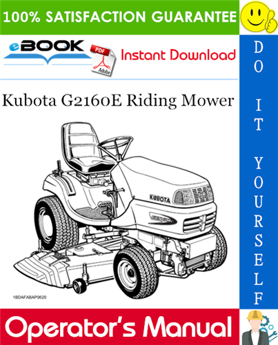 This is the COMPLETE Operators Manual for the Kubota G2160E Riding Mower.