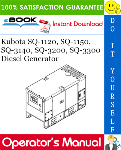 This is the COMPLETE Operators Manual for the Kubota SQ-1120, SQ-1150, SQ-3140, SQ-3200, SQ-3300 Diesel Generator.