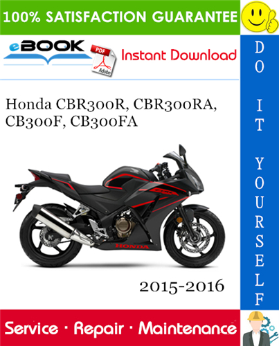 This is the COMPLETE Service Repair Manual for the Honda CBR300R, CBR300RA, CB300F, CB300FA Motorcycle. Production model years 2015 2016. It Covers complete tear down and rebuild, pictures and part diagrams, torque specs, maintenance, troubleshooting, etc.
