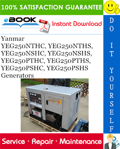 This is the COMPLETE Service Repair Manual for the Yanmar YEG250NTHC, YEG250NTHS, YEG250NSHC, YEG250NSHS, YEG250PTHC, YEG250PTHS, YEG250PSHC, YEG250PSHS Generators. It contains service, repair procedures, assembling, disassembling, wiring diagrams and everything you need to know.