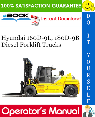 This is the COMPLETE Operators Manual for the Hyundai 160D-9L, 180D-9B Diesel Forklift Trucks.