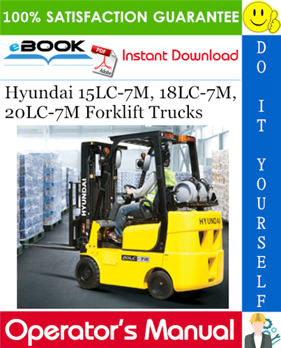 This is the COMPLETE Operators Manual for the Hyundai 15LC-7M, 18LC-7M, 20LC-7M Forklift Trucks.