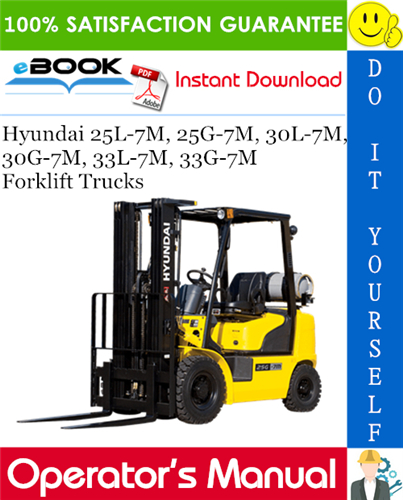 This is the COMPLETE Operators Manual for the Hyundai 25L-7M, 25G-7M, 30L-7M, 30G-7M, 33L-7M, 33G-7M Forklift Trucks.