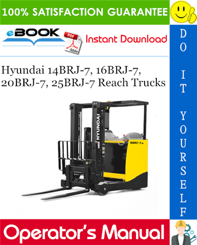 This is the COMPLETE Operators Manual for the Hyundai 14BRJ-7, 16BRJ-7, 20BRJ-7, 25BRJ-7 Reach Trucks.