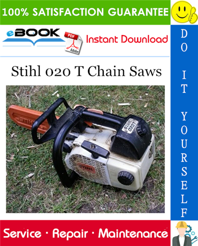 The Service Manual contains detailed information, has specs, diagrams, and actual real photo illustrations, and schemes, which give you complete step-by-step operations on repair, Diagnosing, servicing, technical maintenance & troubleshooting procedures for your Stihl 020 T Chain Saws. this manual offers full information you need for repair your Stihl 020 T Chain Saws. the information in this manual will enable you to find trouble and to understand how to repair and maintain your machine without going into service. YOU CAN DO THE REPAIRS YOURSELF AND SAVE MONEY $$$