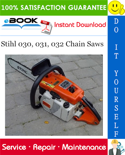The Service Manual contains detailed information, has specs, diagrams, and actual real photo illustrations, and schemes, which give you complete step-by-step operations on repair, Diagnosing, servicing, technical maintenance & troubleshooting procedures for your Stihl 030, 031, 032 Chain Saws. this manual offers full information you need for repair your Stihl 030, 031, 032 Chain Saws. the information in this manual will enable you to find trouble and to understand how to repair and maintain your machine without going into service. YOU CAN DO THE REPAIRS YOURSELF AND SAVE MONEY $$$