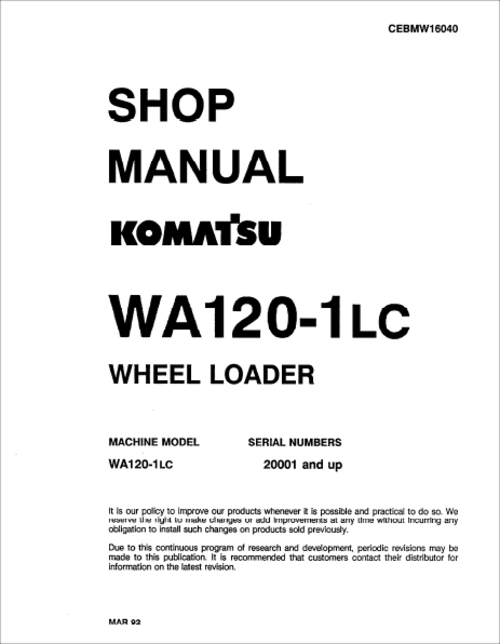 In this Komatsu WAl20-1 LC service manual you will find: