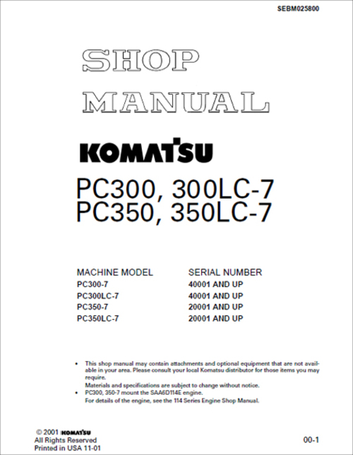 Komatsu PC300-7 Service Manual Serial 40001 and up